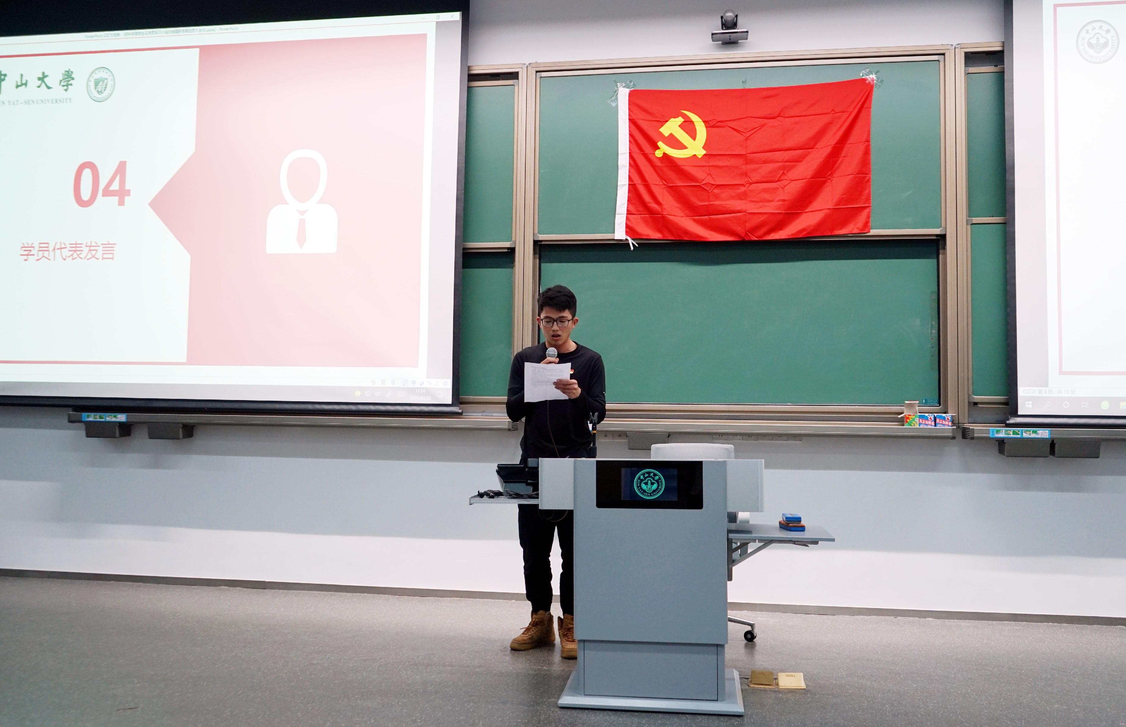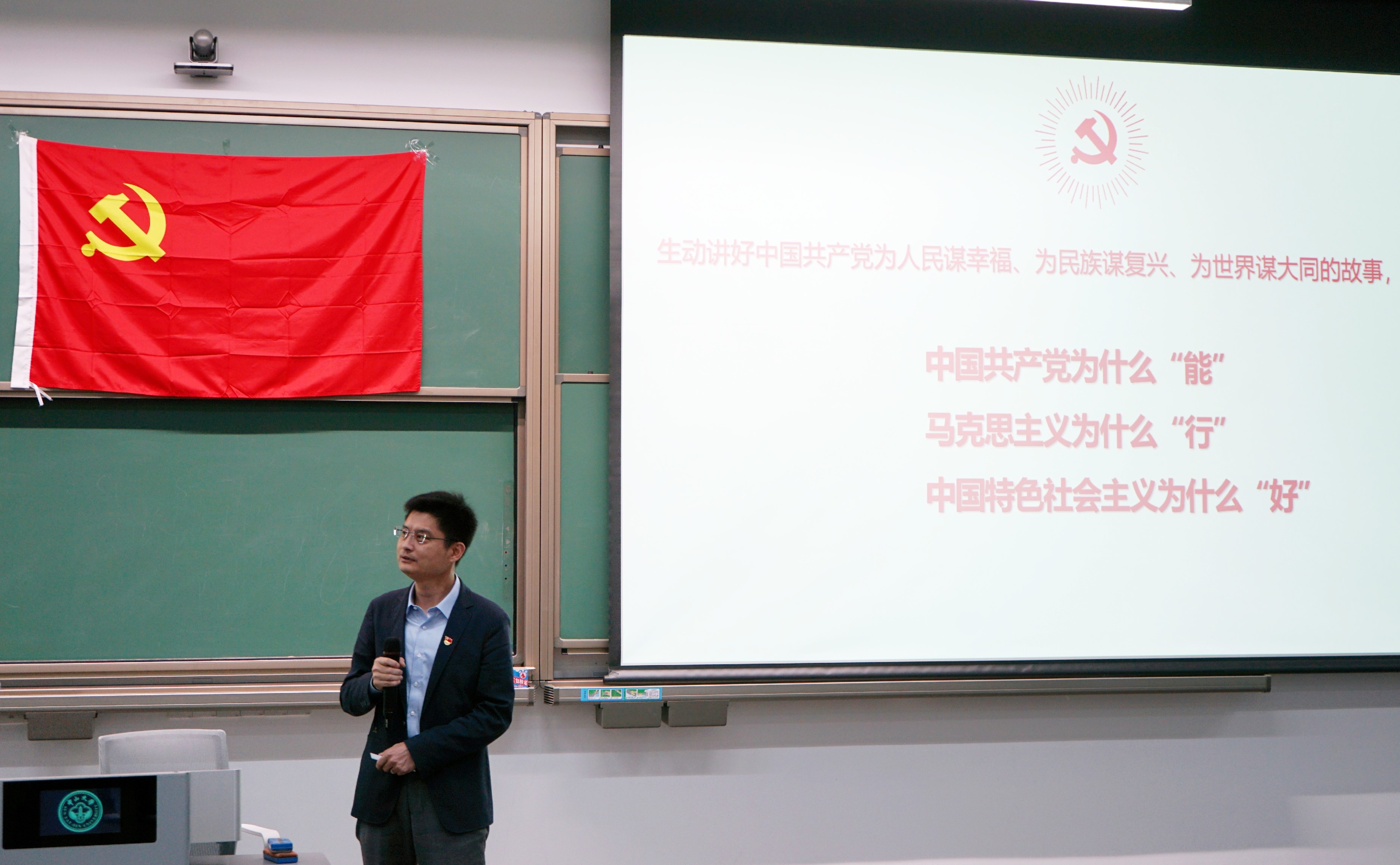 李斌副院长以党史为脉络,带我们重温中国共产党的发展历程,并借助朱德同志和张国华同志的英雄事迹,以及黄旭华,姚桐斌这些伟大科学家的故事,为我们上了一堂生动有趣的思政课。讲述了中国共产党为人民谋幸福、为民族谋复兴、为世界谋大同的故事,有力的阐释了中国共产党为什么“能”, 马克思主义为什么“行”,中国特色社会主义为什么“好”。