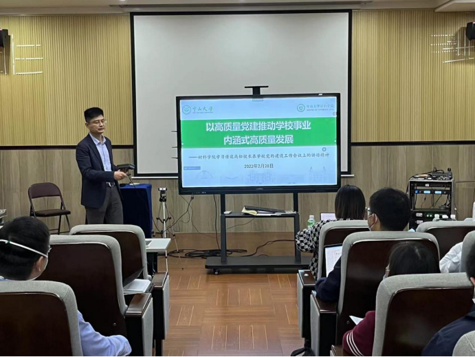 随后,李斌副院长传达了高松校长《以高质量党建推动学校事业内涵式高质量发展》讲话。高校长讲话指出,一是要坚持走好内涵式高质量发展道路;二是要以立德树人为根本,以人才培养为中心,推动教学改革,促进通识教育和专业教育相结合,激发学生主动学习,提高学生学习力、思想力和行动力;三是要以教师队伍建设为核心,坚持适度规模、优化结构、注重质量和追求卓越,培养新时代“四有”好老师;四是要以院系建设为重点,突出特色、尊重个性、搭建平台、加强交流;五是要以学科交叉融合为重点,不断创新机制、营造良好氛围、促进多元合作;六是要以体制机制改革为动力,深化人事聘用制度改革,完善和优化多校园多院系管理模式,稳步探索学部制。