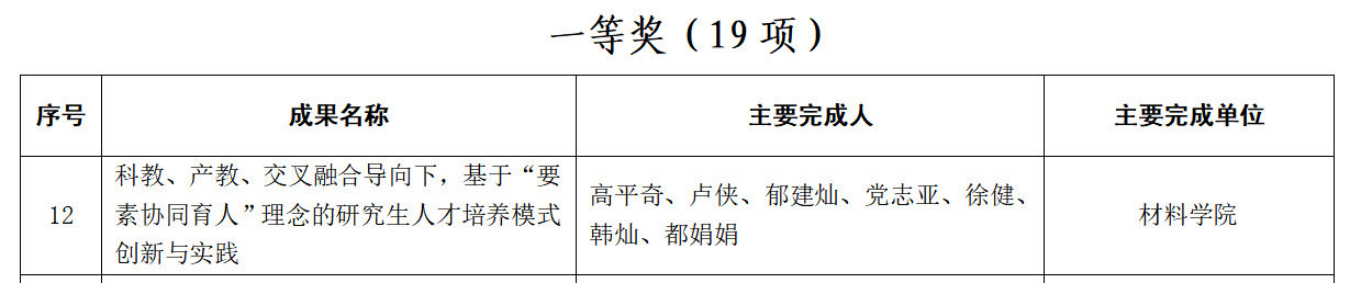 我院高平奇教授牵头申报的教学成果荣获学校首届研究生教育教学成果奖一等奖