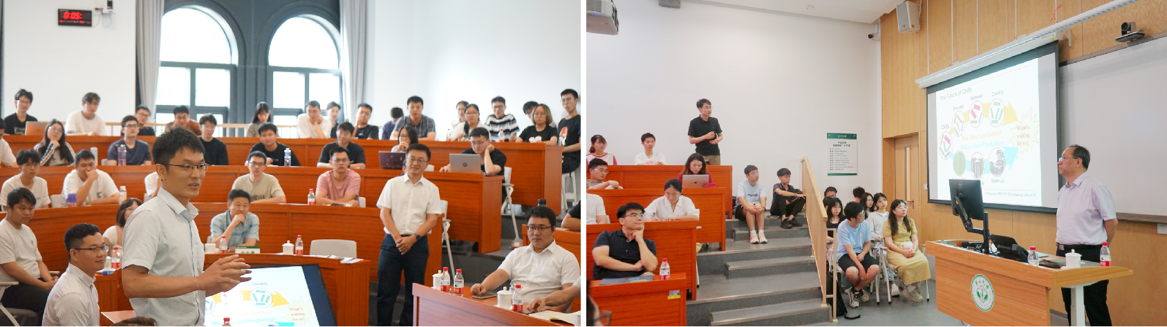 张锦院士从单壁纳米管的特点出发,深入浅出地剖析单壁纳米管材料结构独特的一维纳米结构和优异的电学性质。他从“碳基芯片”的重大需求出发,结合传统纳米材料的研究历程和国内外发展现状,指出目前国内国际形势下面临的重大难题和挑战。他重点围绕单壁碳纳米管的结构控制生长展开,提出了独创性的科学思考和解决方案。
