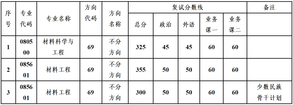 1. 我院各专业复试分数线如下:
